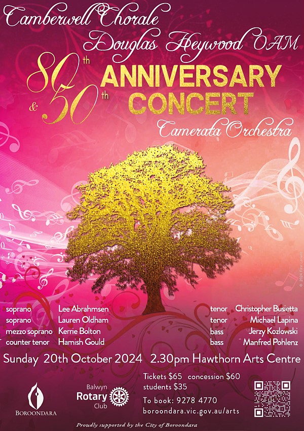 The next gig coming up will be the Camberwell Chorale 80th Anniversary Concert in October as well as the second