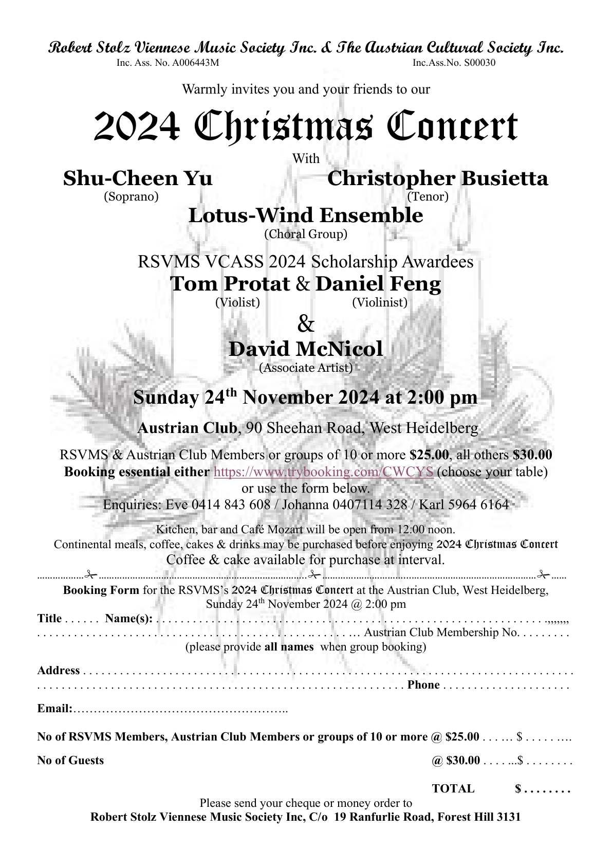 Robert Stolz Viennese Musical Society Christmas concert planned in November.