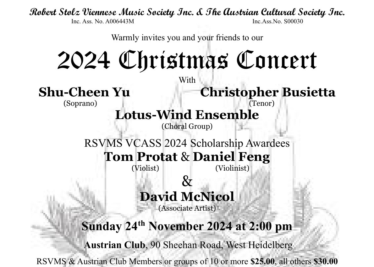 Robert Stolz Viennese Musical Society Christmas concert planned in November.